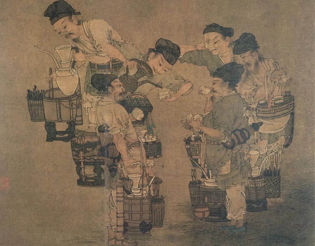 南宋·佚名·斗浆图 黑龙江省博物馆藏 把宋时的风物盛入画境,敛宋时的光阴研入墨笔,四川博物院年度大展“高山仰止 回望东坡——苏轼主题文物特展”上,一幅南宋的《斗浆图》,运以精心,出于妙笔,盈尺的绢本斗方上,描绘了一个比文字记载更生动写实的斗茶场景,还原了一个活色生香的宋代市井。 打开千年前纷纭的往事,重见隔世的光阴,宋时的街市繁华,商铺林立,茶肆遍布,《东京梦华录》卷二之“朱雀门外街巷”中记载:“以南东西两教坊,余皆居民,或茶坊。街心市井,至夜尤盛”;《梦粱录》亦曰:“坊巷桥道,院落纵横,处处各有茶坊、酒肆”。 摄影:刘小龙 茶,可以很雅,雅到点茶与焚香、挂画、插花并称为宋人四大雅事;茶,可以很俗,俗到平民百姓的寻常生活不可或缺。宋人饮茶风气兴盛,点茶是两宋流行的饮茶方式,亦是宋人最风雅的日常。点茶前先将茶叶研磨成茶末,用沸水调成茶膏,再入盏冲点,一边注水,一边以茶筅快速击拂,冲点击拂数次,使茶末和水完全交融成乳状。 摄影:刘小龙 由点茶演化而来的技巧比试便是斗茶,宋代斗茶风气兴盛,皇室贵族、文人雅士、平民百姓皆好斗茶。斗主要是斗色斗浮,色即茶汤色泽,以纯白为上;浮指沫饽,华之薄者曰沫,厚者曰饽。蔡襄的《茶录》曰:“茶少汤多,则云脚散;汤少茶多,则粥面聚”,宋徽宗《大观茶论》记载:“乳雾汹涌,溢盏而起,周回凝而不动,谓之咬盏”,斗茶以色白及咬盏最久为胜。 翩跹着宋时不泯的记忆,婉转着笔墨间不朽的韵致,《斗浆图》是一幅人物风俗画,两宋时期,随着商品经济的繁荣,普通市民阶层扩大,以表现市井生活为内容的风俗画空前发展,宋代的社会、风俗、人物及服饰皆被描摹入画,突破了传统绘画创作中崇尚高雅的窠臼,再现了宋人的日常生活和精神面貌。 摄影:刘小龙 《斗浆图》画风淳朴,设色古雅,斗浆即斗茶,它生动地描绘了宋人街头斗茶的情景,展示了宋代独具特色的斗茶文化。《东京梦华录》卷五之“民俗”中提到“更有提茶瓶之人,每日邻里互相支茶,相问动静”,画中六位“提瓶人”,他们的表情、神态、动作各异,有的提瓶注汤,有的正在品茶,有的夹碳理火,有的相互交谈,传神地表现出斗茶者真实质朴的形象。人物面部采用细微的高古游丝描,刻画细致,用笔细秀,兼以淡墨晕染烘托,形神兼备,自然真切。 泛黄的绢帛,古雅的画意,承载着数百年光阴的重量,收藏着一个朝代的气息。《东京梦华录》卷五之“民俗”记载:“其士农工商,诸行百户,衣装各有本色,不敢越外”,可见服制甚严。画中人物所着服饰为竖褐,又称短褐,上襦长裤,头扎皂色裹巾,是底层小商贩的典型造型,其中两人腰间挂伞,三人脚穿草鞋,一人穿蓝色布鞋,一人赤脚。人物衣褶处使用铁线描和钉头鼠尾描,简练流畅,线条遒劲,转折顿挫间展示出下层百姓衣物的特色。 摄影:刘小龙 有一袭烟火气从遥远的南宋轻轻拂来,在数百年前的市井一隅。地上的支架上放置着竹编提器,内有碳炉,汤瓶置于碳炉之上,竹器、雨伞等器物采用了界画的技法,描绘得精准细腻,其中一个筐上还精心绘上了凤纹。汤瓶、茶筅、茶盏皆是宋时点茶的必备用具,画中器物虽多,却一丝不苟,繁而不乱。《斗浆图》无作者款识,仅在画面左下方钤清初收藏家“张则之”一方印章。集市街景,社会风俗,点茶之器,斗茶之人,是笔墨收容中的众生百态,是线条勾勒下的世俗万象,在静静的展厅内与之相对,婉转着与南宋擦肩而过的辰光。 摄影:刘小龙 “矮纸斜行闲作草,晴窗细乳戏分茶”,分茶,指茶百戏,这是一种利用茶末与水的反应,将茶汤幻变成不同物象图案的高超技艺。宋代陶毂在《荈茗录》中记载:“近世有下汤运匕,别施妙诀,使汤纹水脉成物象者,禽兽虫鱼花草之属,纤巧如画,但须臾即就散灭。此茶之变也,时人谓之茶百戏”。风雅的宋人,把点茶点出了新的花样和高度。 凝练在宋时的诗意里,封存在隔世的画境中,尽管风雅繁复的点茶在宋之后日渐式微,成为茶文化的绝响,然而跨越千年,我们依然可以体验古人曾体验过的幸福,蔡襄“兔毫紫瓯新,蟹眼青泉煮”的精美之器,东坡“雪沫乳花浮午盏”的人间清欢,陆游“晴窗细乳戏分茶”的文人雅趣,点一盏茶,在千年的风雅里,与宋人心心相通。 上海市宝山区传承末茶道协会组织的斗茶 转载自:四川博物院